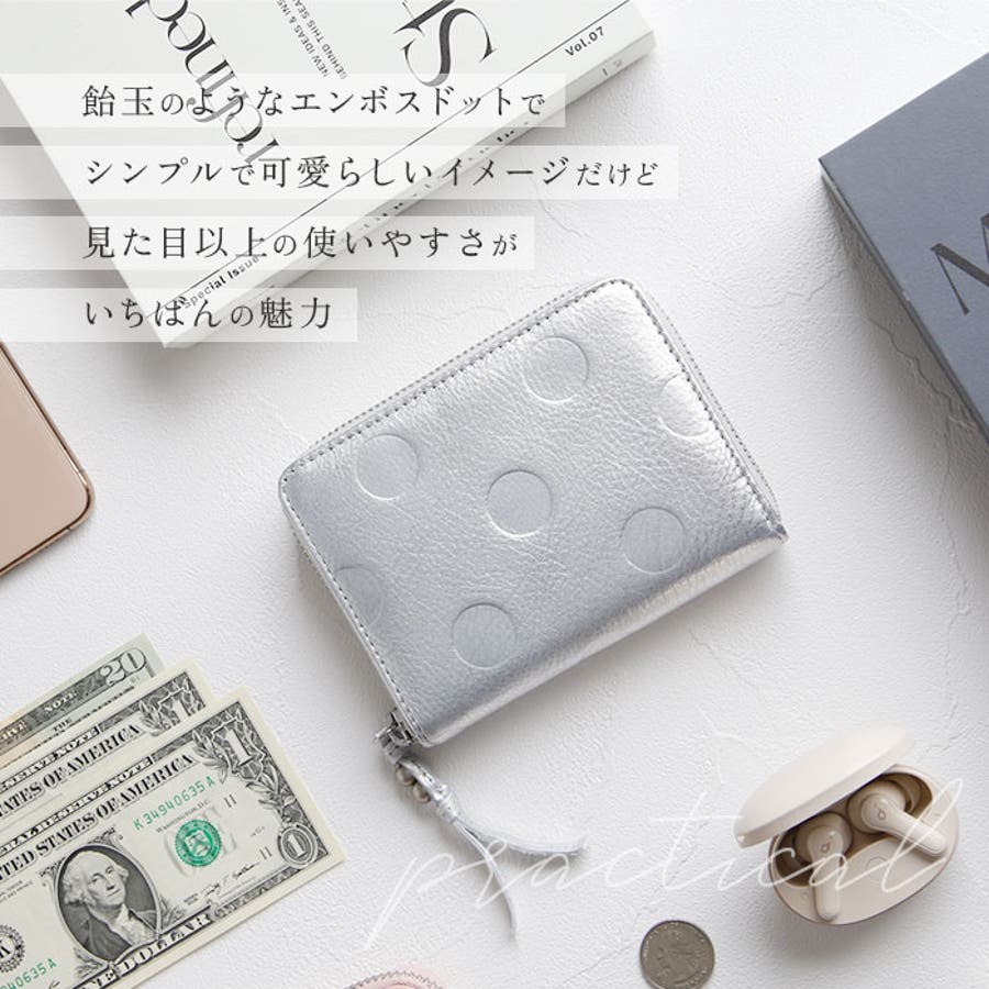 【キーワード】二つ折り財布 ブランド 二つ折り 折財布 お財布 レディース ラウンドファスナー おしゃれ シンプル 型押し ドット 水玉 きれいめ ドット型押しラウンドパームフィット財布 小銭入れあり レディース財布