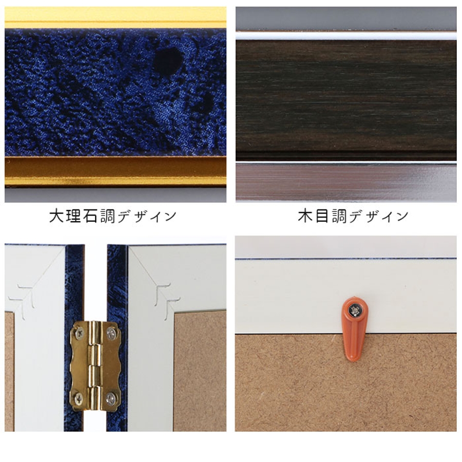 ・大理石や木目調の地模様にゴールドのラインが入った華やかな写真立て。