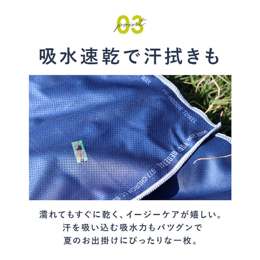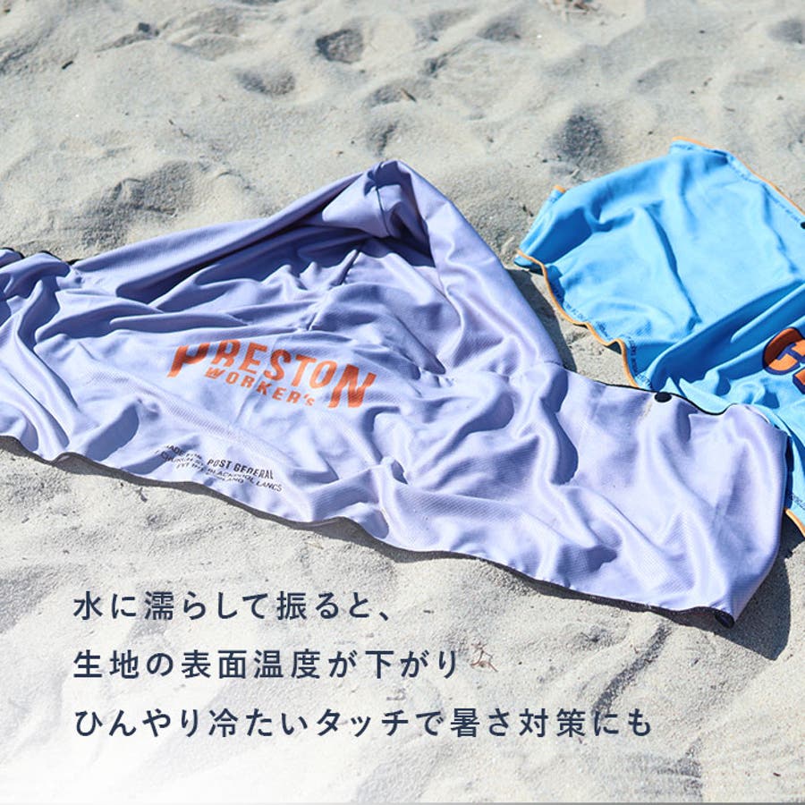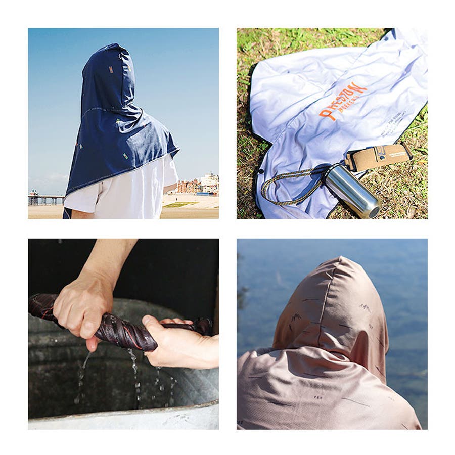 ・水に濡らして振ると、生地の表面温度が下がりひんやり冷たいタッチに。暑さ対策に!