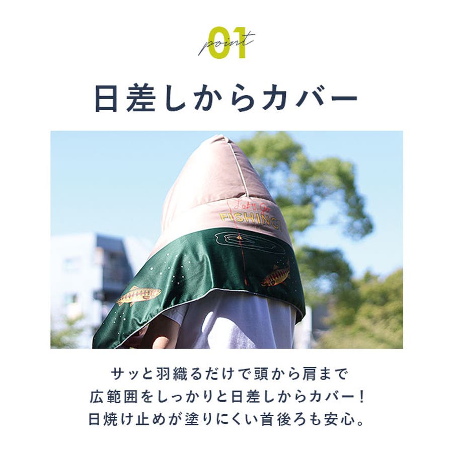 ・日焼けしやすい首元を守ってくれる、フーディータイプ。日よけや汗拭きとして使える!