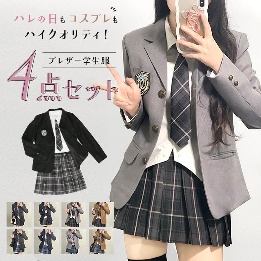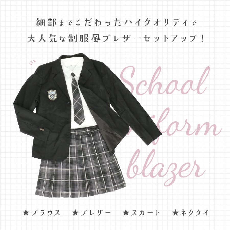 ・ブラウス、ブレザー、スカートはもちろん、ネクタイが付いたセットアップでコーデが完成◎