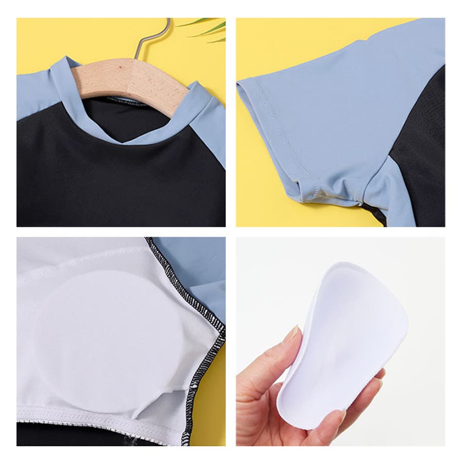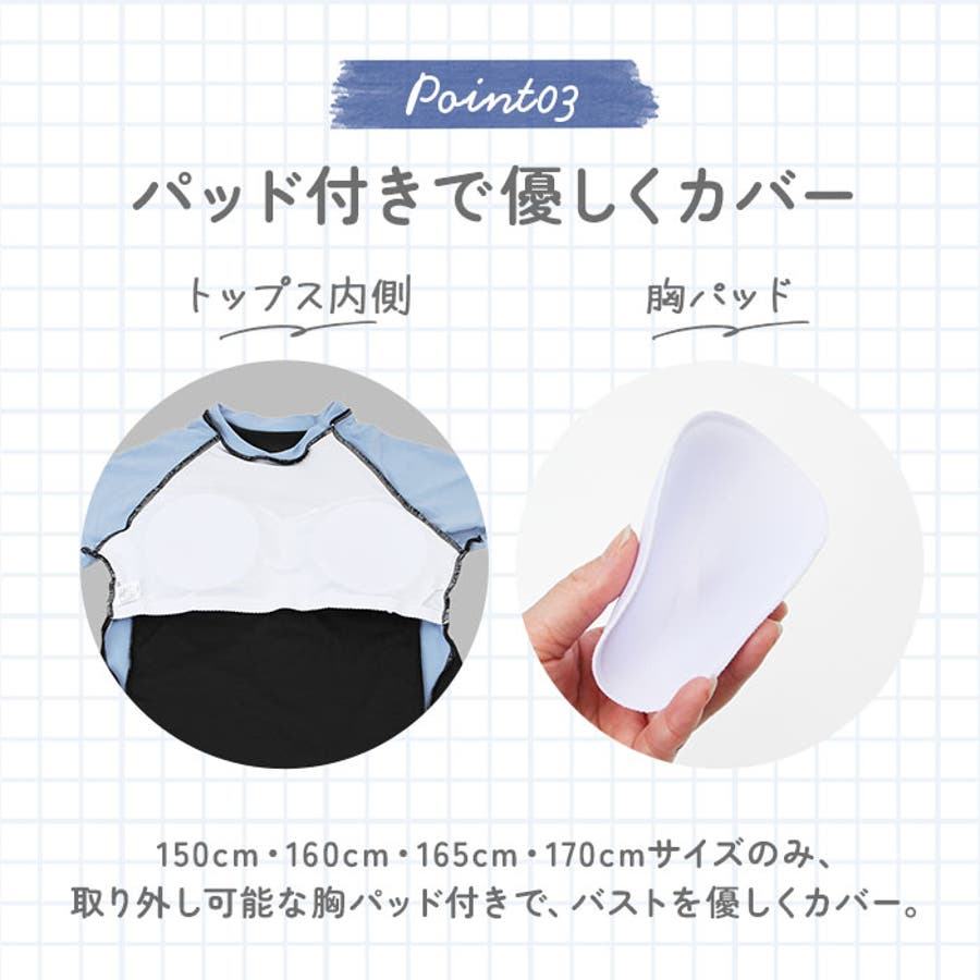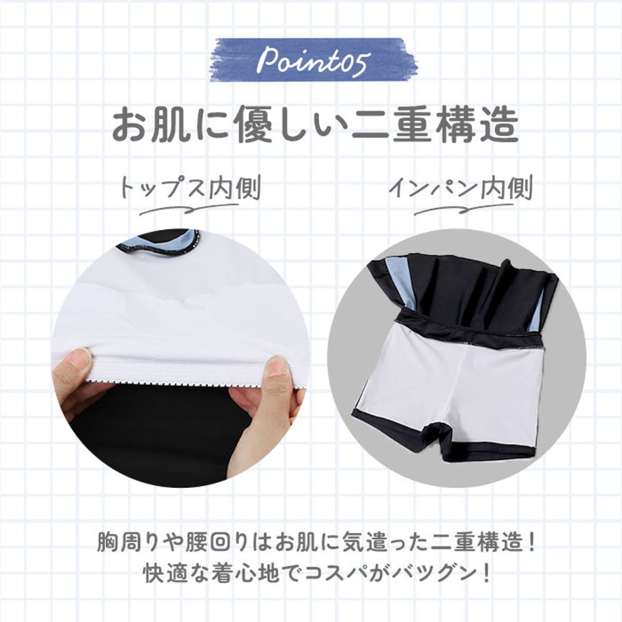 ・バスト、股部分は裏地付きの二重構造。150cm・160cm・165cm・170cmサイズは取り外し可能な胸パッド付きで、バストを優しくカバー。