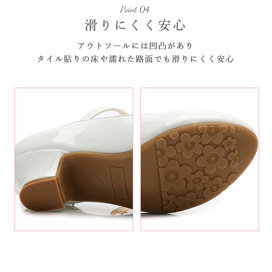 ・シューズのエナメル光沢とチャームが上品で華やかなシューズ。歩くたびに揺れるビジュー付きチャームが華やかさをUP。