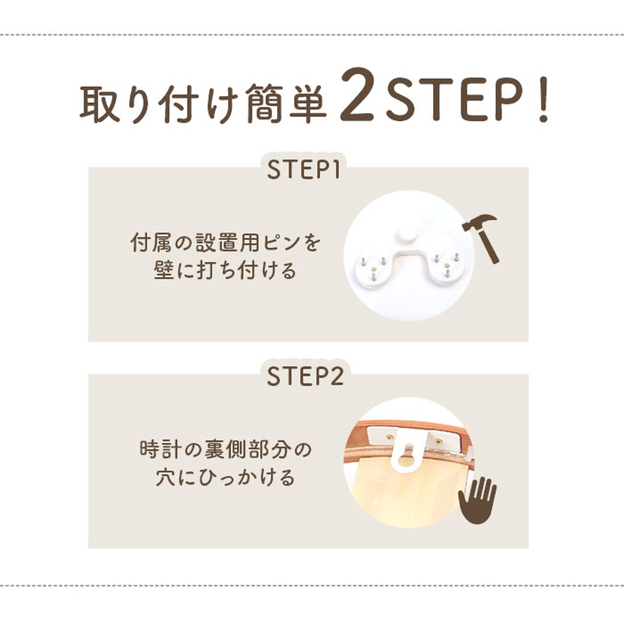 ・フレームとインデックスと針はすべて木製♪ほっこりとしたデザインでお部屋の雰囲気を優しくしてくれる◎