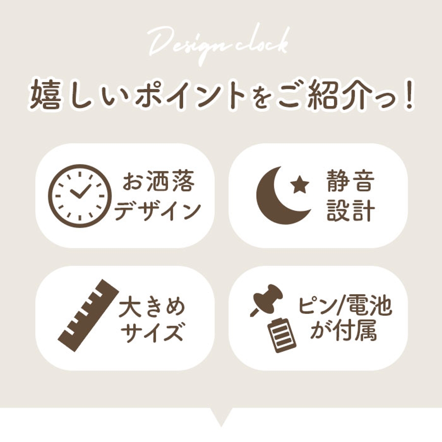 ・秒針がないのでコチコチ音が気にならない!寝室など静かに過ごしたいお部屋にオススメ!