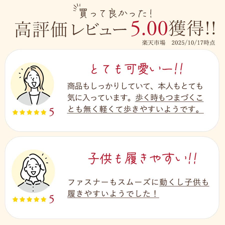 ・スニーカーと同じくらいの軽量さ。歩きやすさを重視した作りなので、アクティブなお子様の動きでも大丈夫!