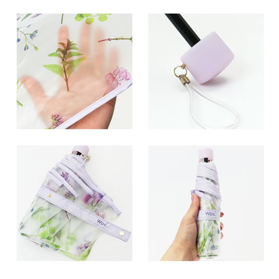 ・コスメポーチのようにいつものバッグの片隅に入れてスマートに持ち歩ける、傘生地と同じ花柄デザインの半透明ケース付き。