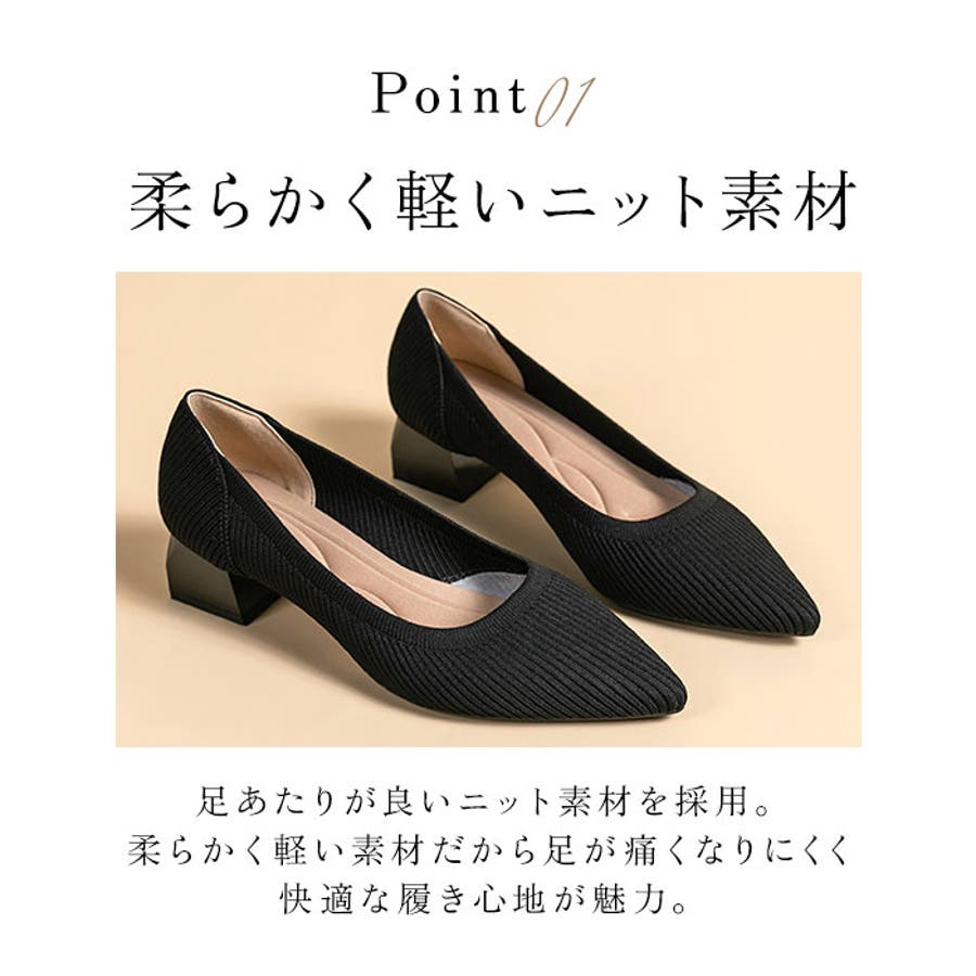 ニット パンプス ローヒール pmy1508
