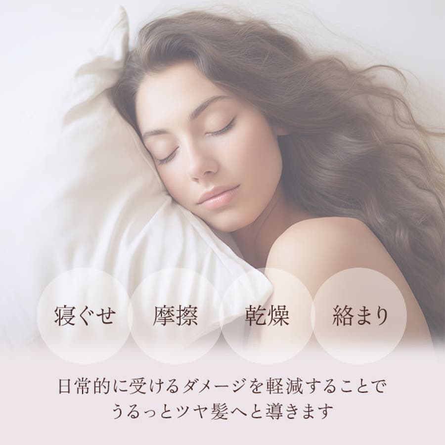 ・手触りも柔らかなシルク素材が、髪のもつれや枕と髪の擦れなど就寝中のダメージをブロック。