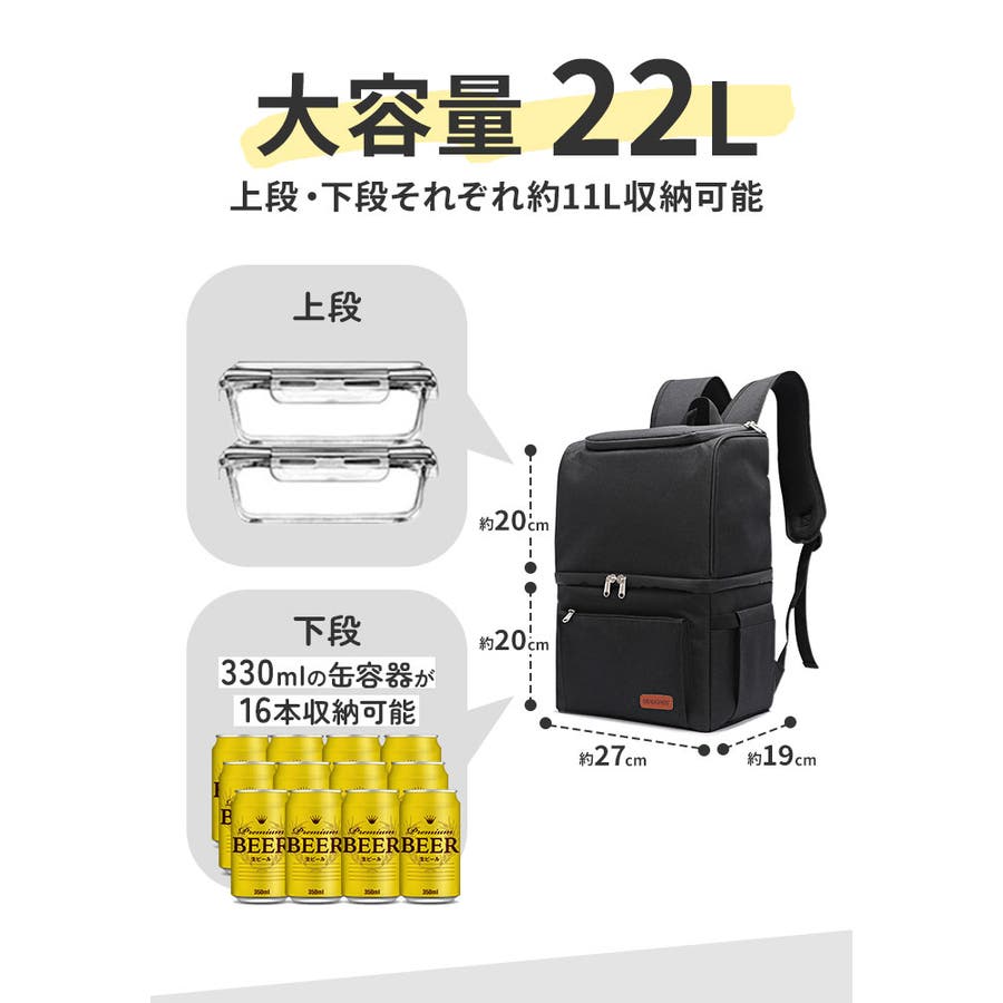 【キーワード】保冷リュック 大容量 クーラーバッグ クーラーバック 保冷 ファスナー リュックサック 保温 バックパック デイパック 保冷保温 22L 2層 お弁当 飲みもの ボトル 運動会 遠足 キャンプ アウトドア ピクニック お花見 スポーツ アウトドア用品