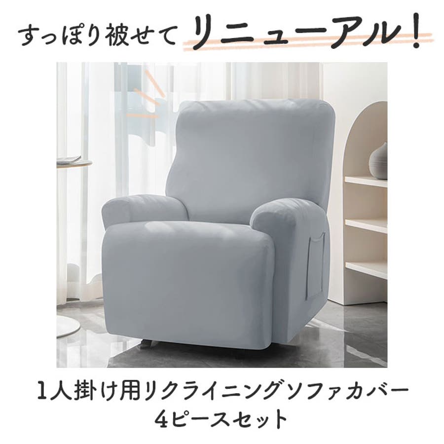 ・すっぽり被せて、リクライニングソファをリニューアル!誰でもキレイに着せ替えられる「1人掛け用リクライニングソファカバー・4ピースセット」