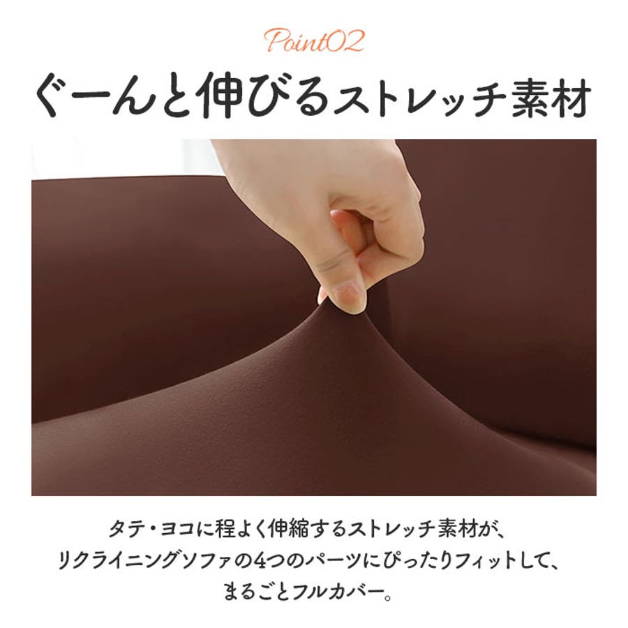 ・タテ・ヨコに程よく伸縮するストレッチ素材が、リクライニングチェアの4つのパーツにぴったりフィットして、まるごとフルカバー。