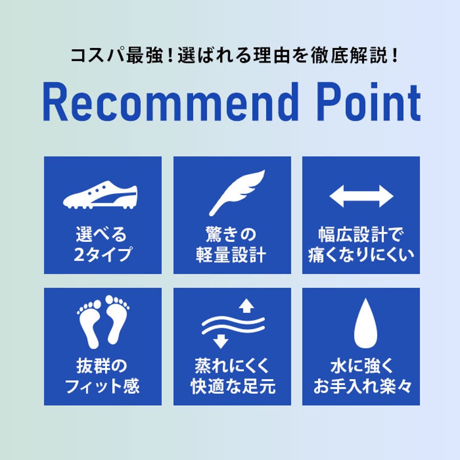 ・スパイク付きと無しと2タイプをご用意。使用するグランドに合わせて選べば、パフォーマンスの向上にも★