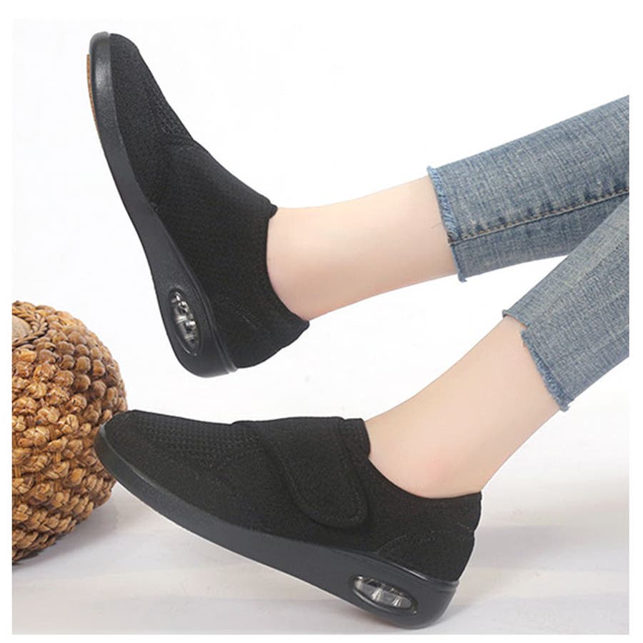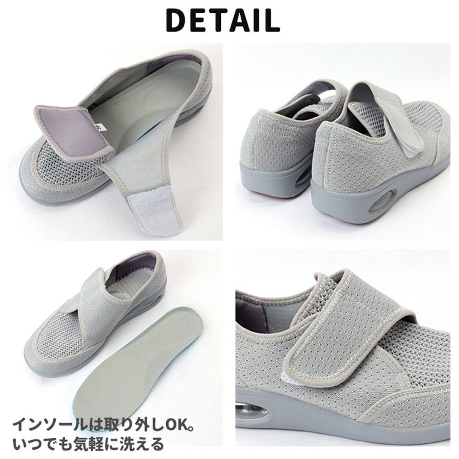 ・メイン素材はメッシュのような仕様になっており、通気性に優れたアイテム。長時間の立ち仕事や、リハビリなどのシーンでも靴内が快適。