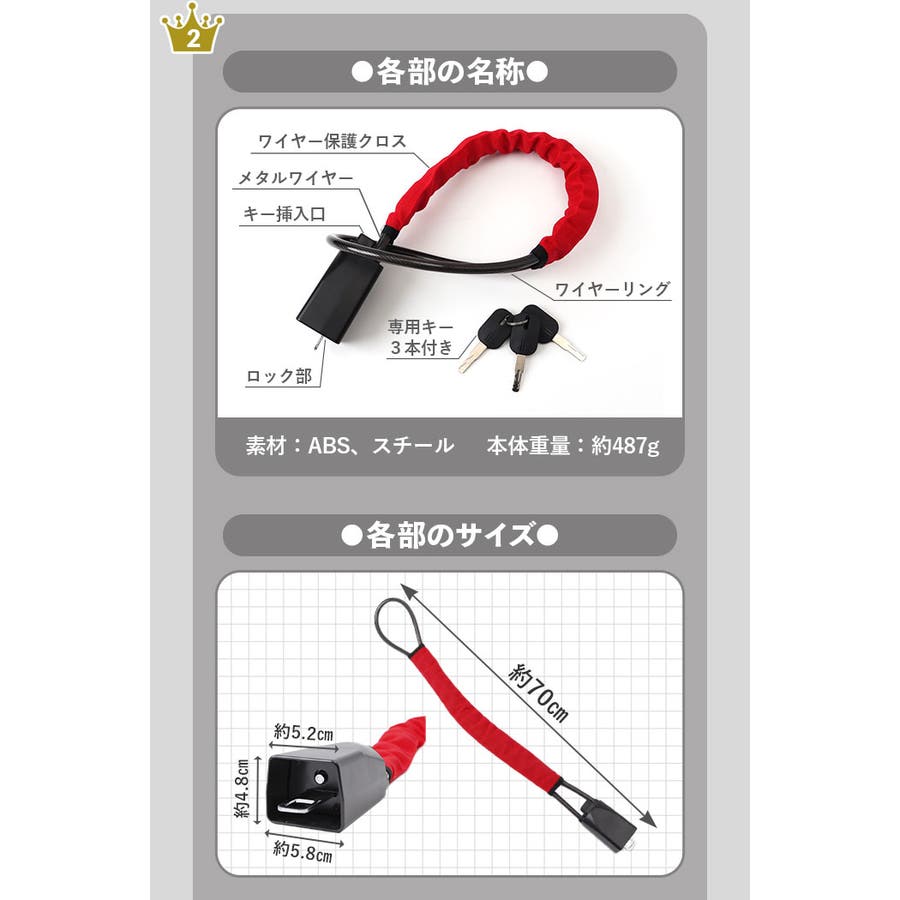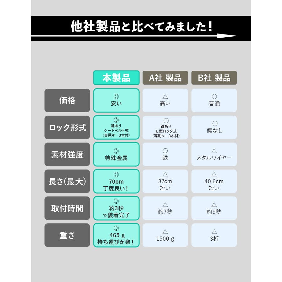 ・切断に強い頑丈でタフなワイヤーを採用!車の外からでも見える抜群の存在感で盗難抑止効果◎