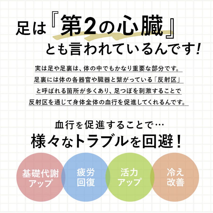 ・大きさの違う無数の突起が、足裏の凹凸に優しくフィット!足つぼを心地よく刺激して、足の裏から健康に!