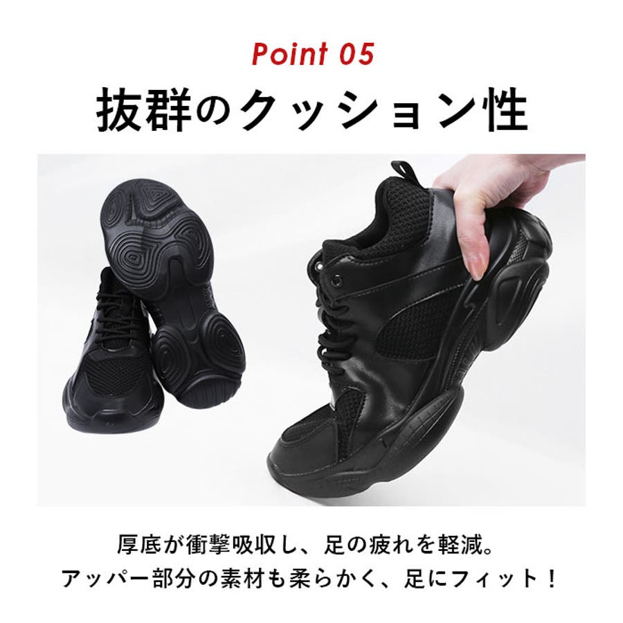 ・ボリューム感のある見た目に反し、軽量設計により軽い履き心地。歩きやすさにこだわったアイテム。