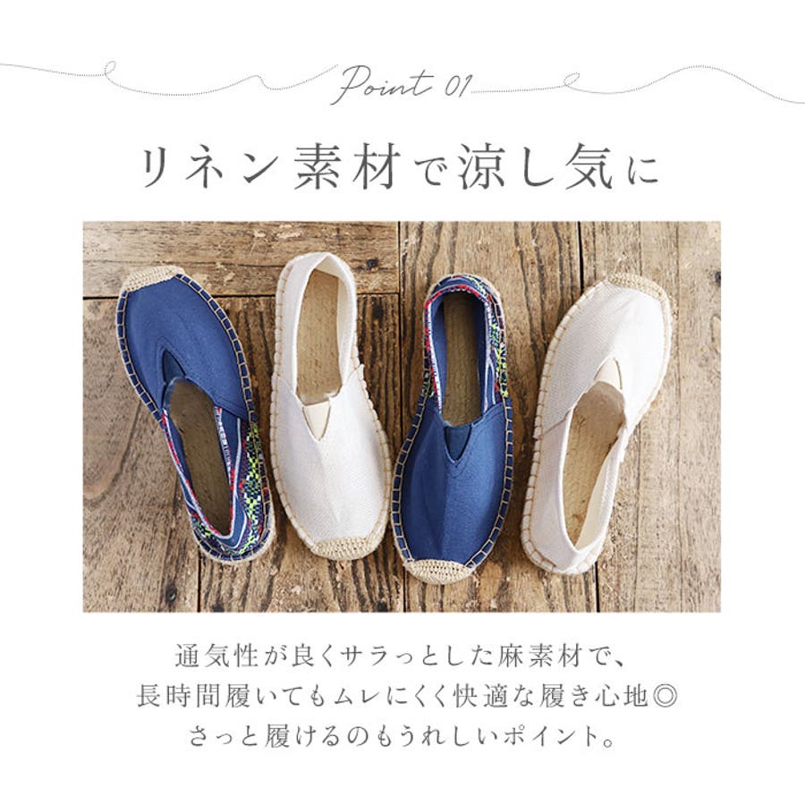 ・通気性が良くサラっとした麻素材で、長時間履いてもムレにくく快適な履き心地◎