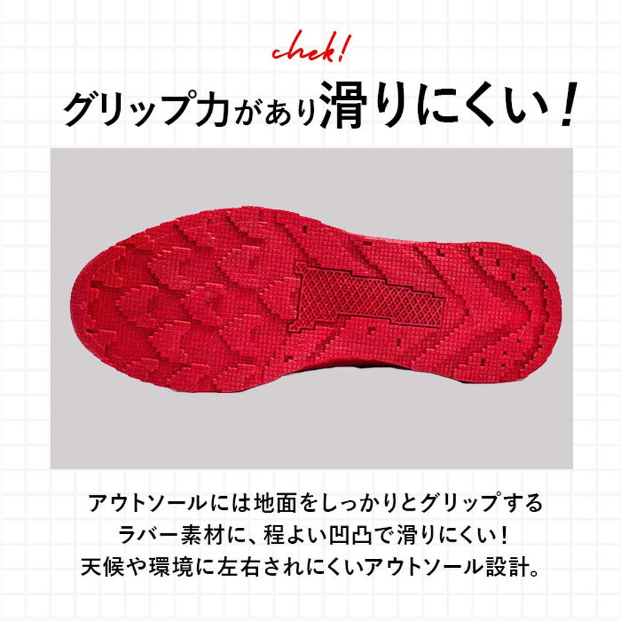・アッパー部分にはメッシュ素材を採用。通気性が良いのでムレにくい。靴内を快適にキープ。