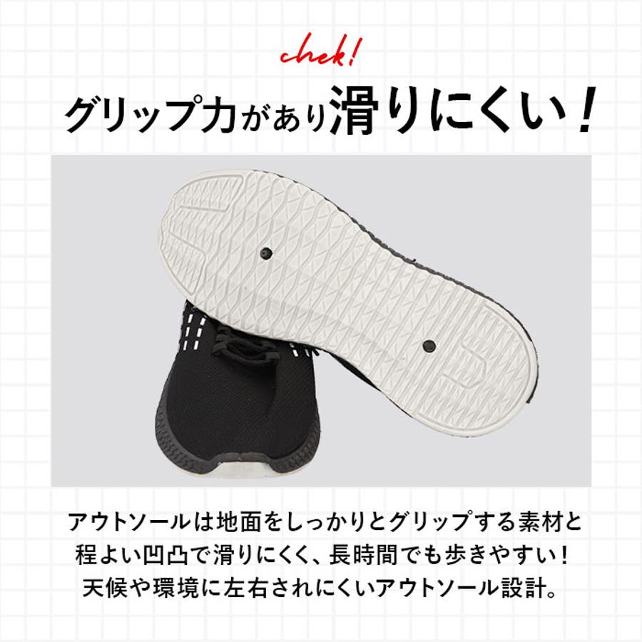 ・アウトソールは滑りにくい素材を使用。地面からの衝撃もやわらげるので長時間でも歩きやすい!