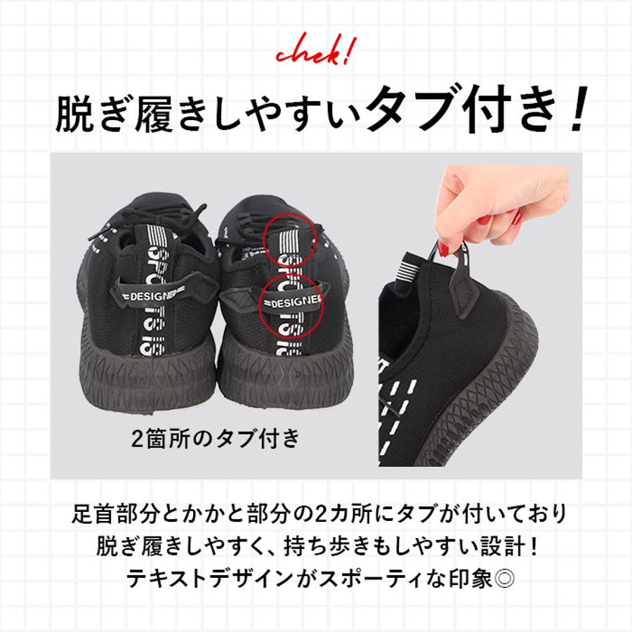 ・かかと部分には便利なタブが付いており、指を引っ掛けて簡単に履けることができて便利。
