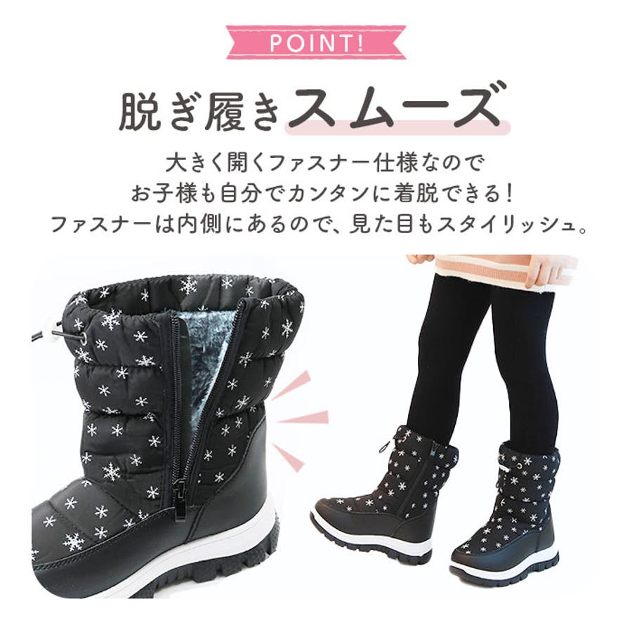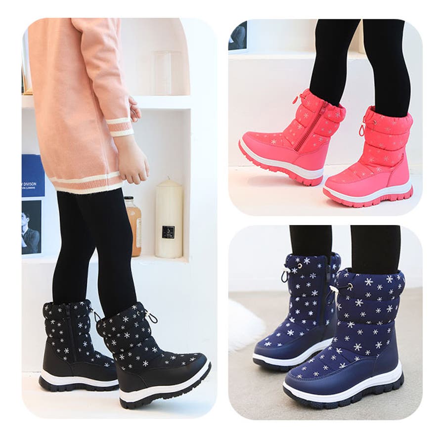 【キーワード】長靴 キッズブーツ スノー ブーツ 雪遊び こども 子供 通学 通園 雪 遊び 女の子 防寒 あったか ファスナー付き 履きやすい 脱ぎやすい 滑り止め 内ボア かわいい 雪柄 結晶 軽量 軽い 撥水 キッズファッション