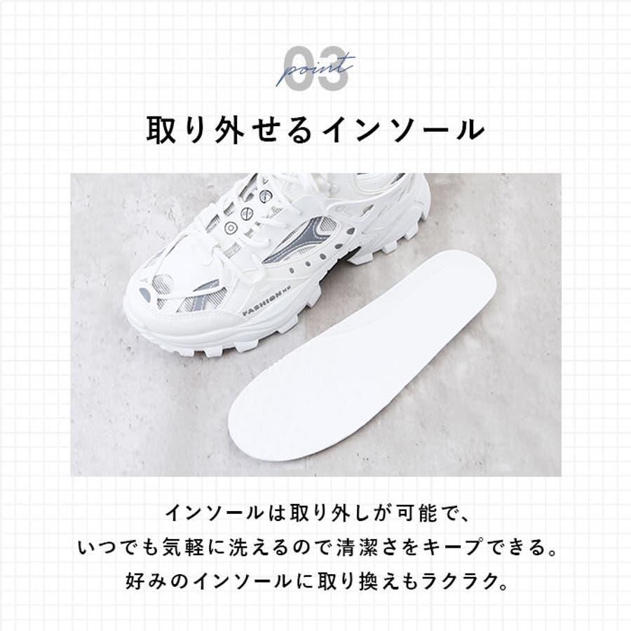・インソールは取り外しOK。いつでも気軽に洗えるので清潔さをキープできる。