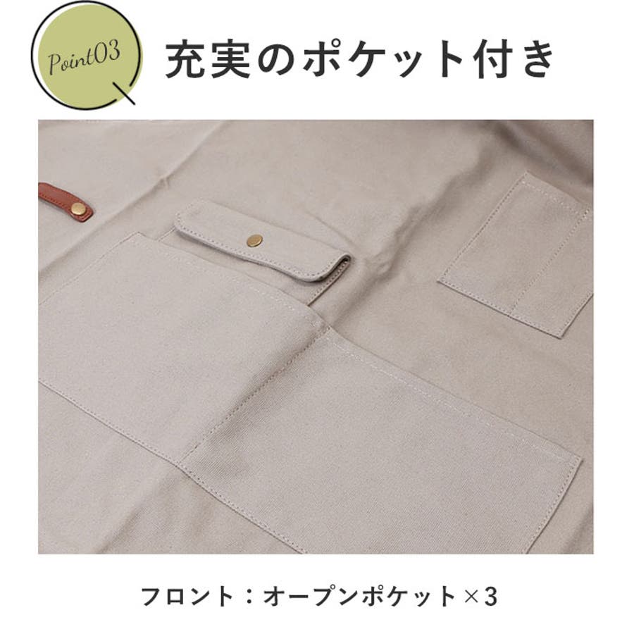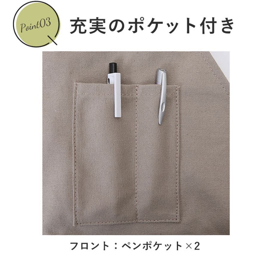 ・ナチュラルな風合いのコットンキャンバス生地を使用。しっかりとした生地感で、洋服を汚れからしっかりガード!