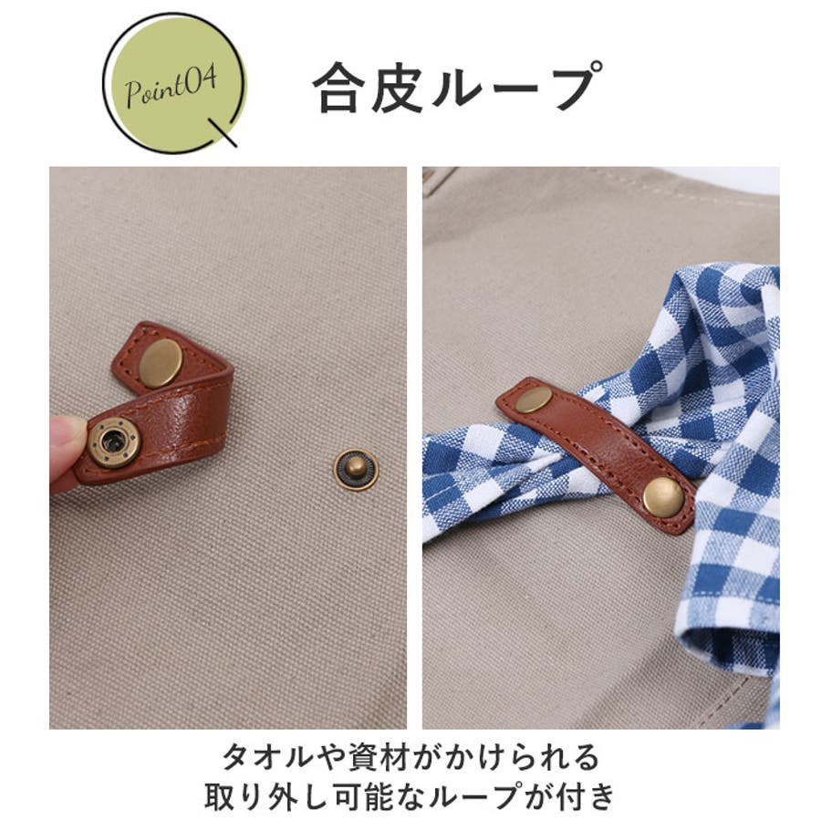 ・小物などを収納できる充実のポケット付き。タオルや資材がかけられる合皮ループは、取り外しOK。