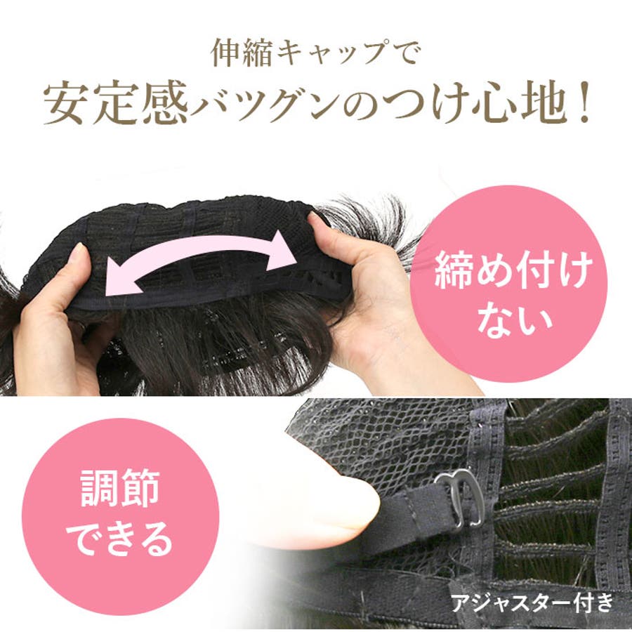 ・自毛をまとめるオールウィッグネット(黒)が1つ付属。ネットを使うことで、凹凸のないキレイなシルエットに。(※ネットはお手持ちのピンで固定してください。)