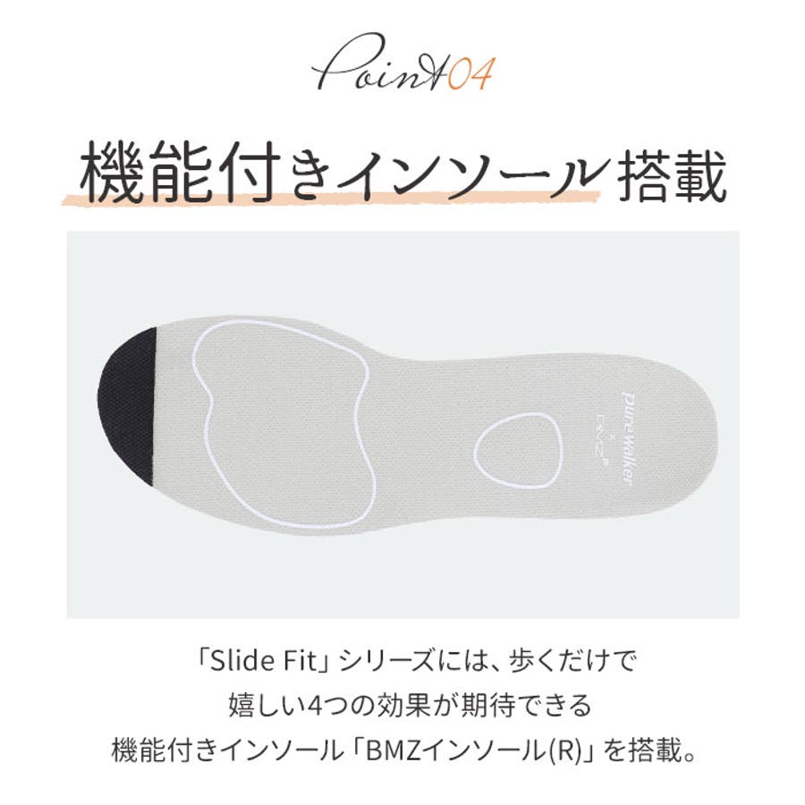 ・「Slide Fit」シリーズは、歩くだけで嬉しい4つの効果が期待できるユニークな機能付きインソール「BMZインソール(R)」を搭載。