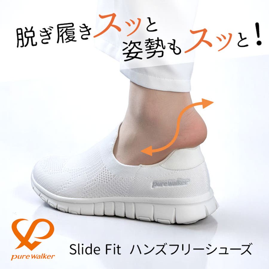 ・つま先がスッと入って、脱ぐときもサッと手間取らない!「Slide Fit -スライドフィット-」は、手を使わずに楽に脱ぎ履きできるシリーズ。