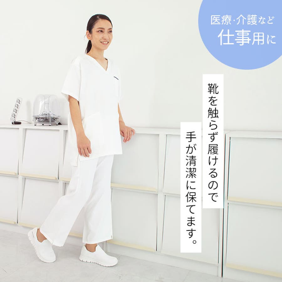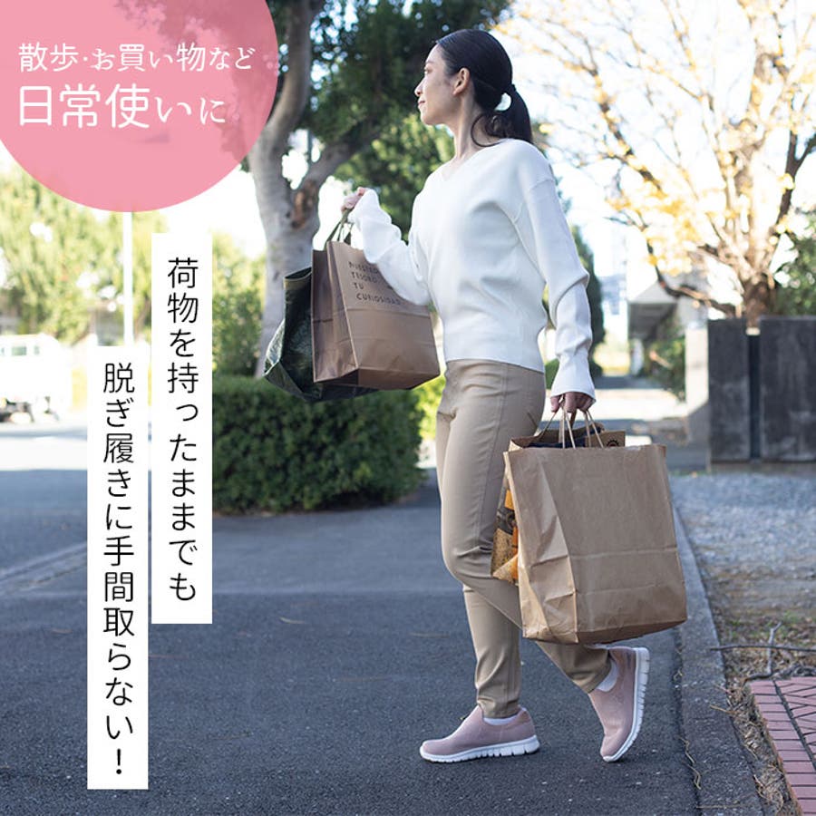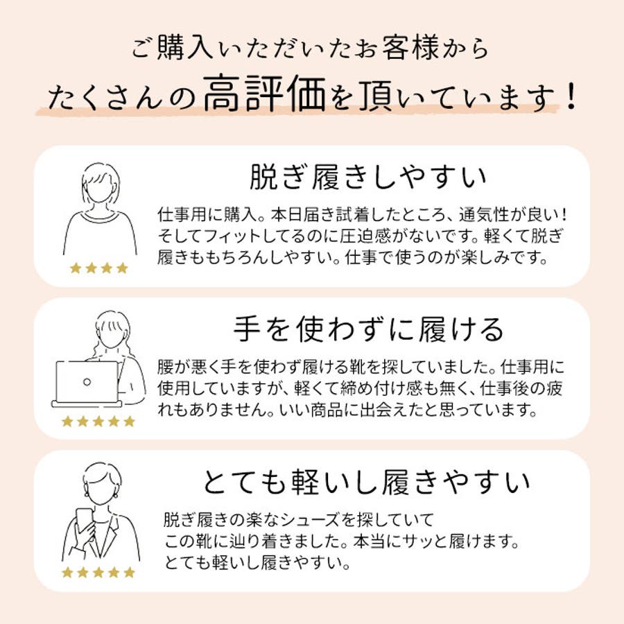 ・滑らかなかかとのカップ形状が足入れをサポート!しゃがんだり身体を屈める必要がなく、ハンズフリーで脱ぎ履き楽ちん。