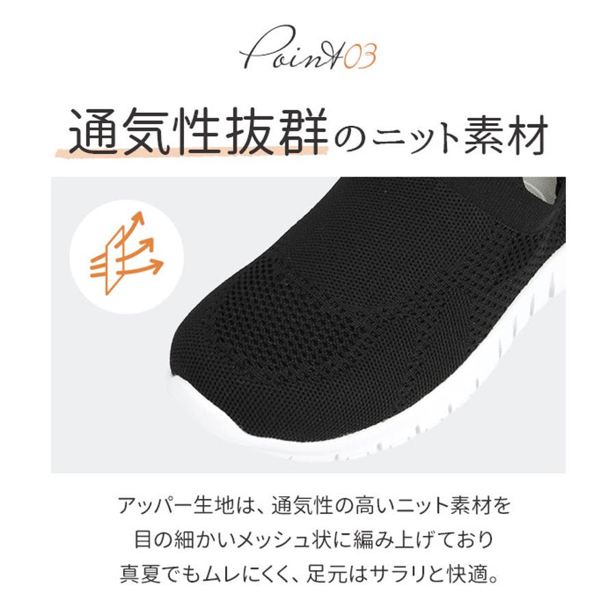 ・アッパー生地は、通気性の高いニット素材を目の細かいメッシュ状に編み上げ、真夏でも足元はサラリと快適。