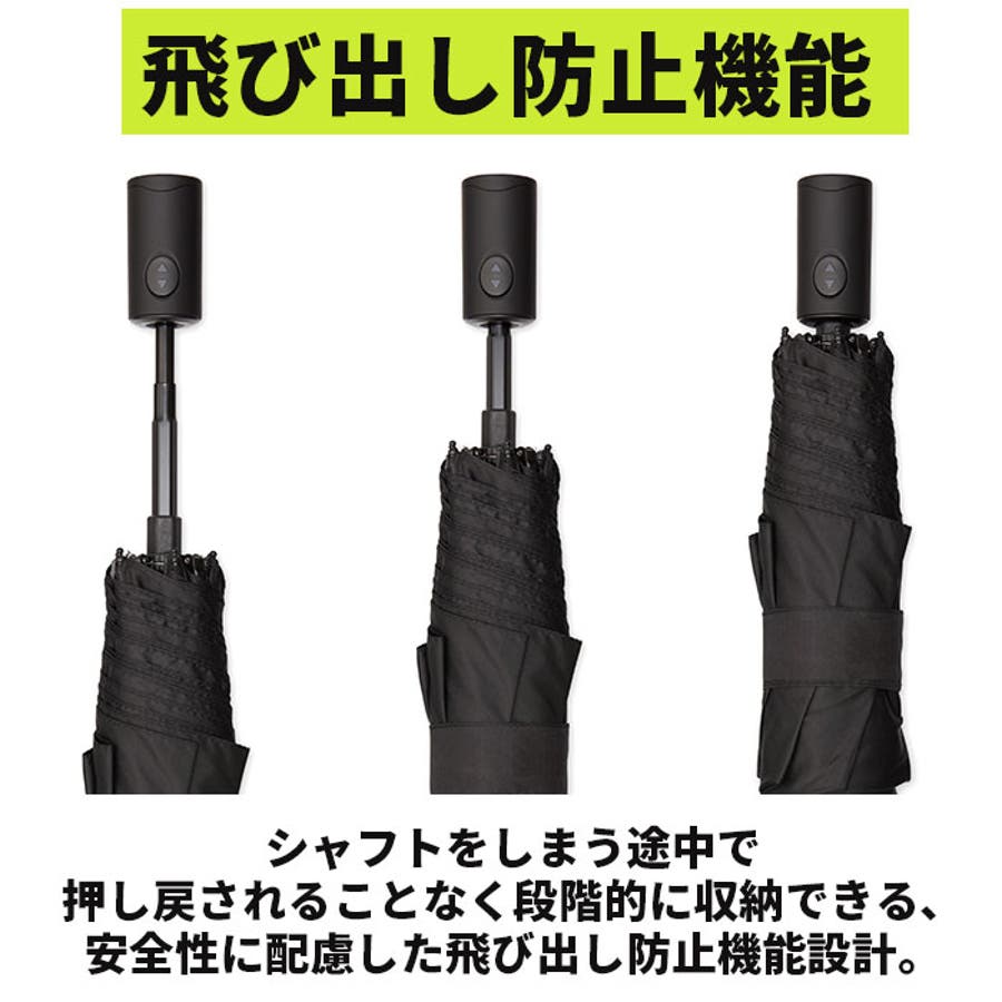 ・持ち手のボタンを押すだけで、片手で簡単に自動開閉操作ができる優れモノ。