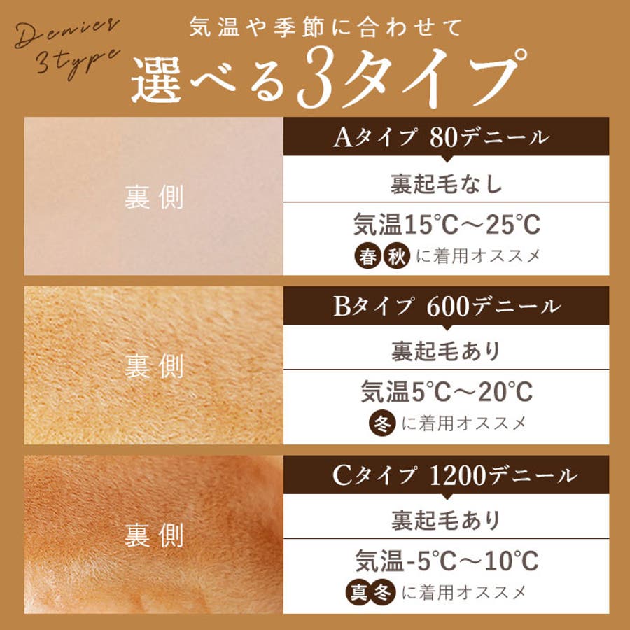 ・季節に合わせて選べる3タイプのデニールで、寒さ対策もバッチリ!