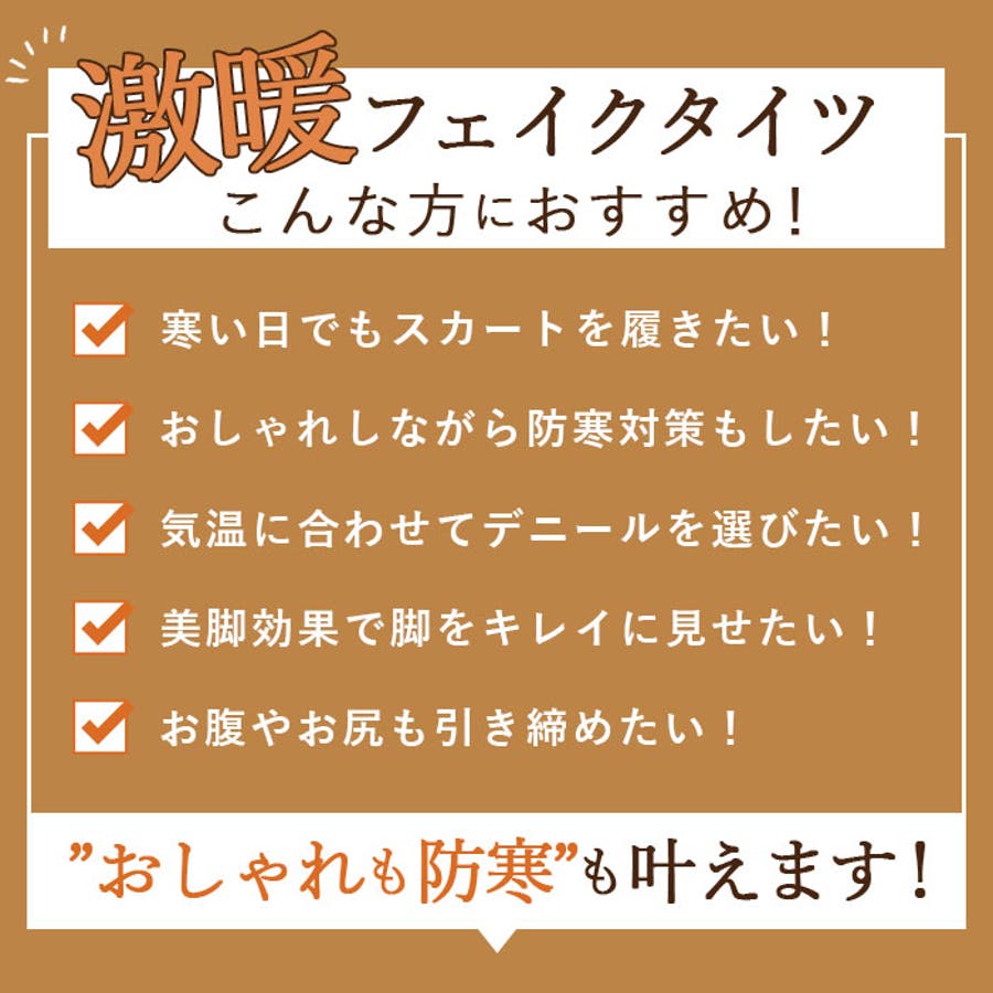 ブラウン系のタイツを探していて見つけました。裏起毛で暖かいしブラック系のボトムに合わせて着たいと思います。