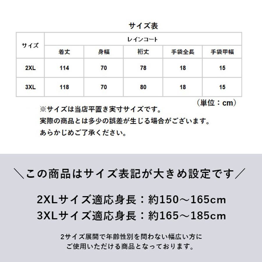 | サイズ | レインコート2xl / レインコート3xl |