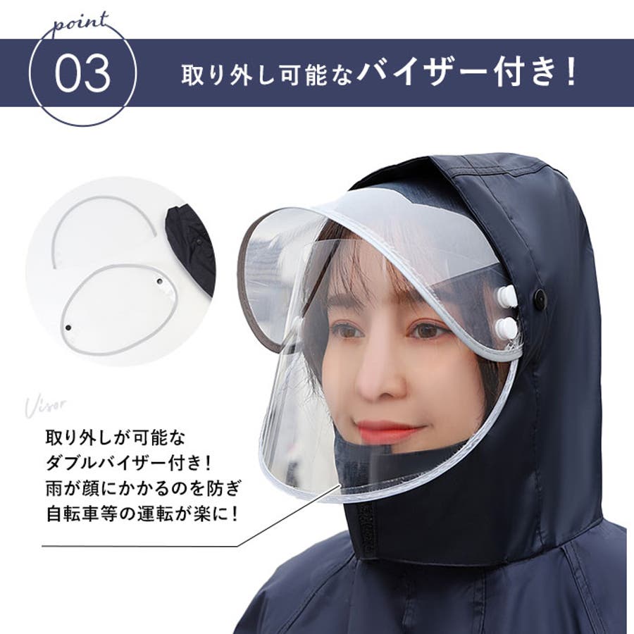 ・取り外し可能なダブルレインバイザーは自転車乗車時に活躍♪雨が顔にかかるのを防いでくれるから、運転がラクラク。