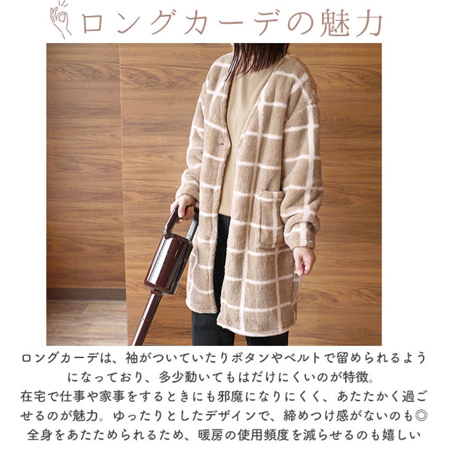 【キーワード】ルームウェア カーディガン 部屋着 ボア 裏起毛 ロング 北欧 マイクロファイバー 軽い 暖かい あったか 防寒 無地 冬 秋