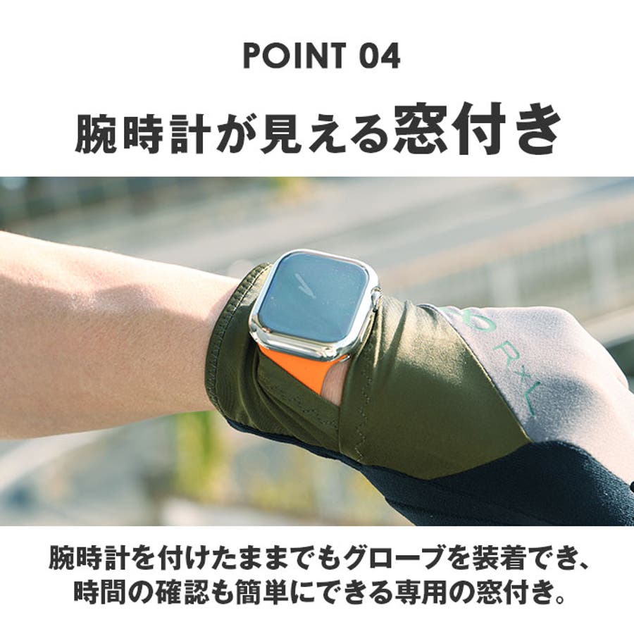 ・グローブには腕時計を付けたままでも見やすい専用のウィンドウ付き。