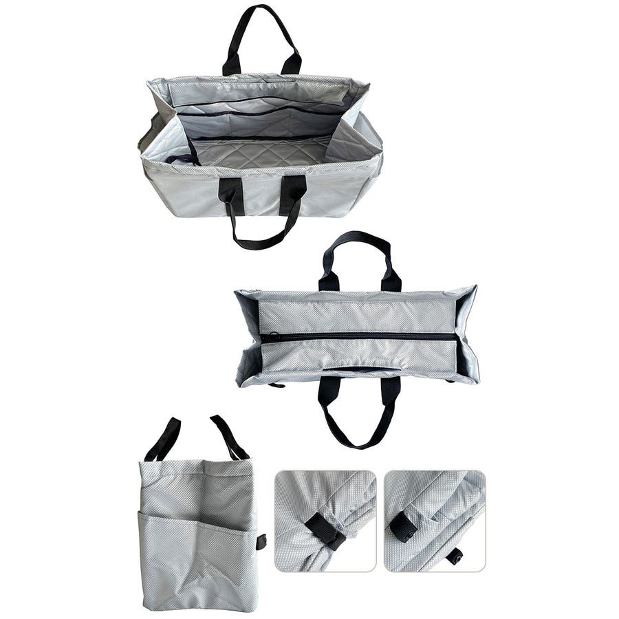 | ・内側のオープンポケットに折りたたんでコンパクトに収納でき、ストラップハンドルを使用して、ぐるりとまとめることも可能です。 |