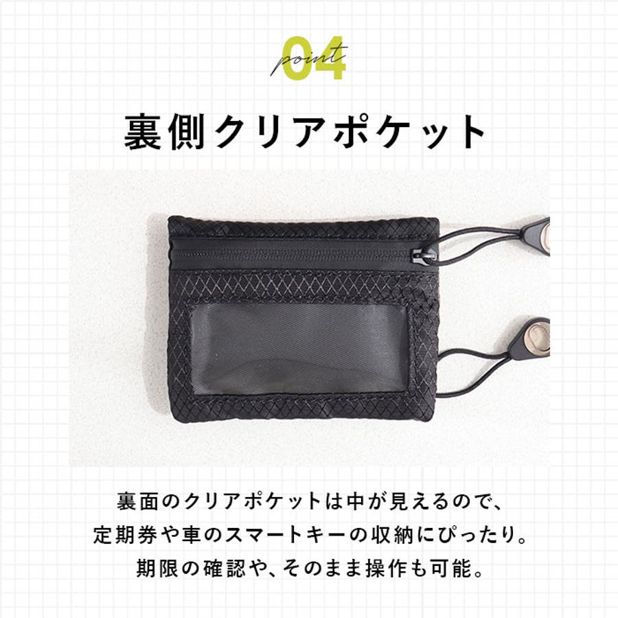 ・裏側のカードポケットは中身が見えるクリア仕様。面ファスナー式で、ICカードがうっかり滑り落ちる心配なし♪表には見せる定期や回数券、内ポケットにはICカードを入れて通勤通学やレジャーをスマートに♪
