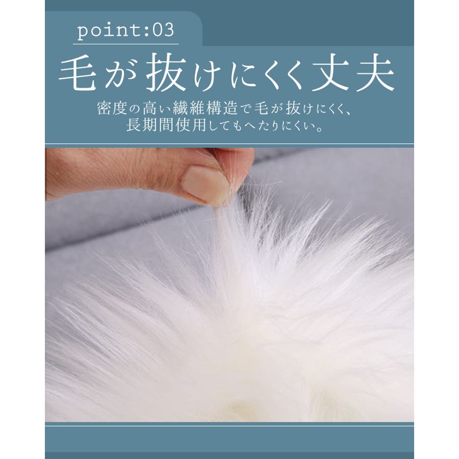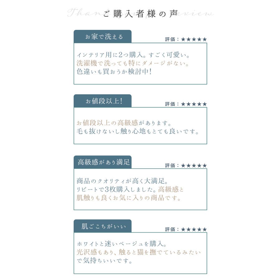 投稿日:2022.07.20ホワイトグレーを購入。写真のように、椅子にかけるために購入しました。値段の割にとてもかわいいです。同じくグレーも購入しましたが、こころなしかホワイトグレーの方が毛が長い気がします