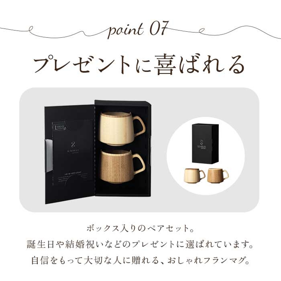 ・ボックス入りのペアセット。誕生日や結婚祝いなどのプレゼントに最適。