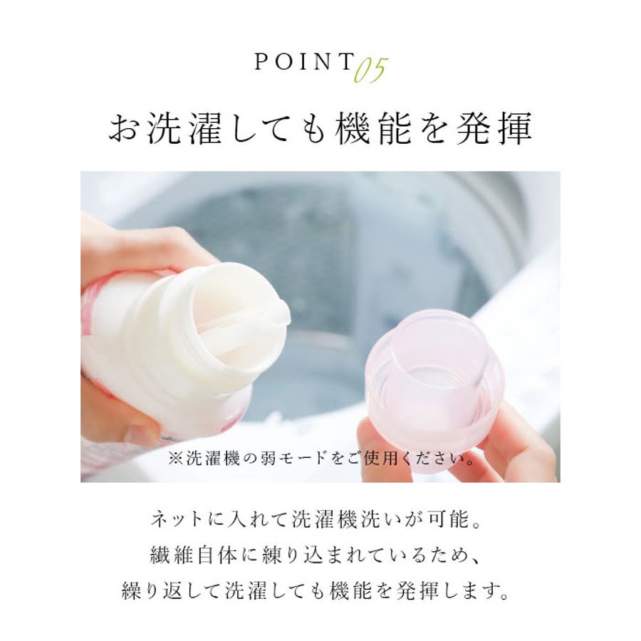 (※)洗濯機の弱モードをご使用ください。繊維自体に練り込まれているため、繰り返し洗濯しても機能を発揮します。