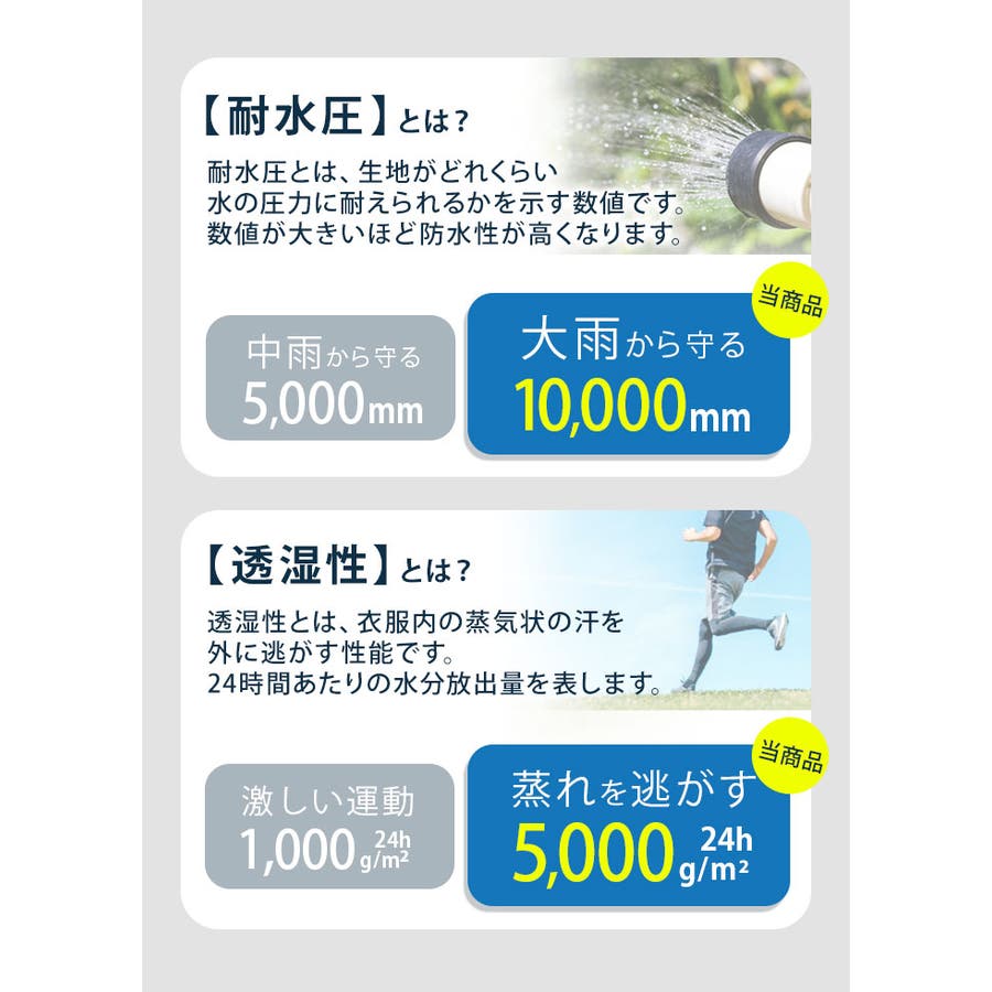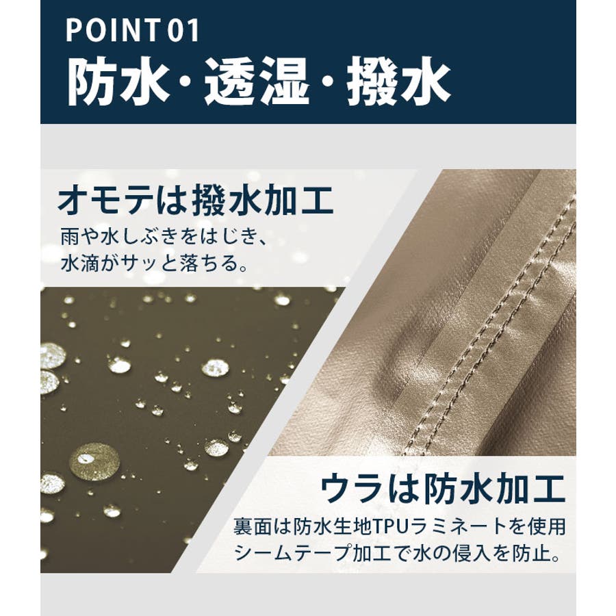 ・大雨の日の通勤通学も安心な耐水圧10,000mmの耐水・防水設計!さらに縫製部分の裏側にシームテープ加工を施すことで雨の侵入を防ぐ作り。