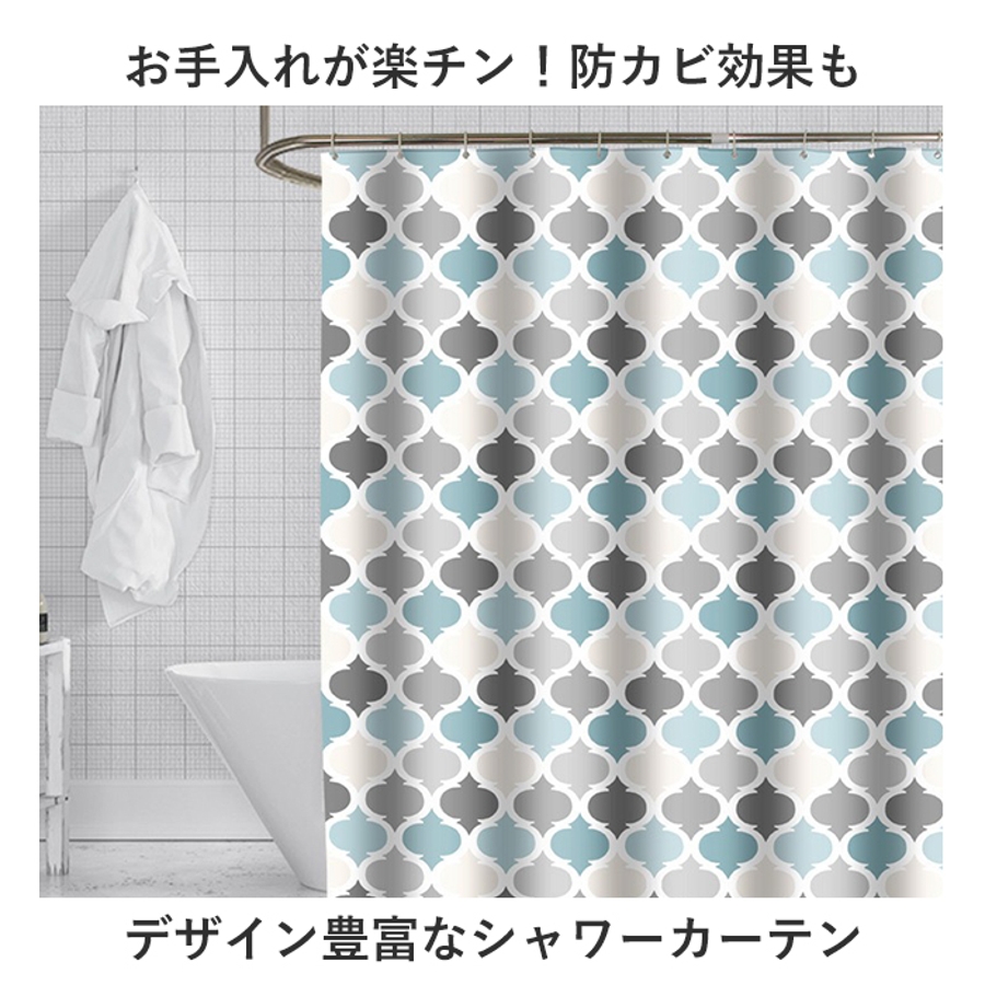 フック付きシャワーカーテン 防カビ sc004