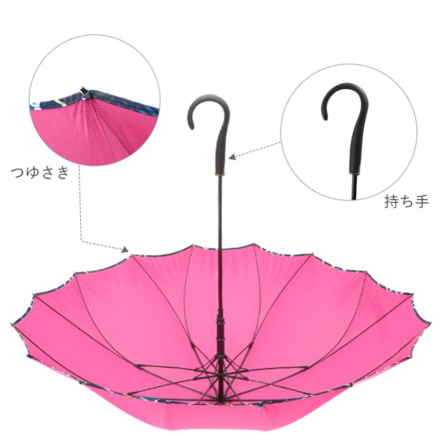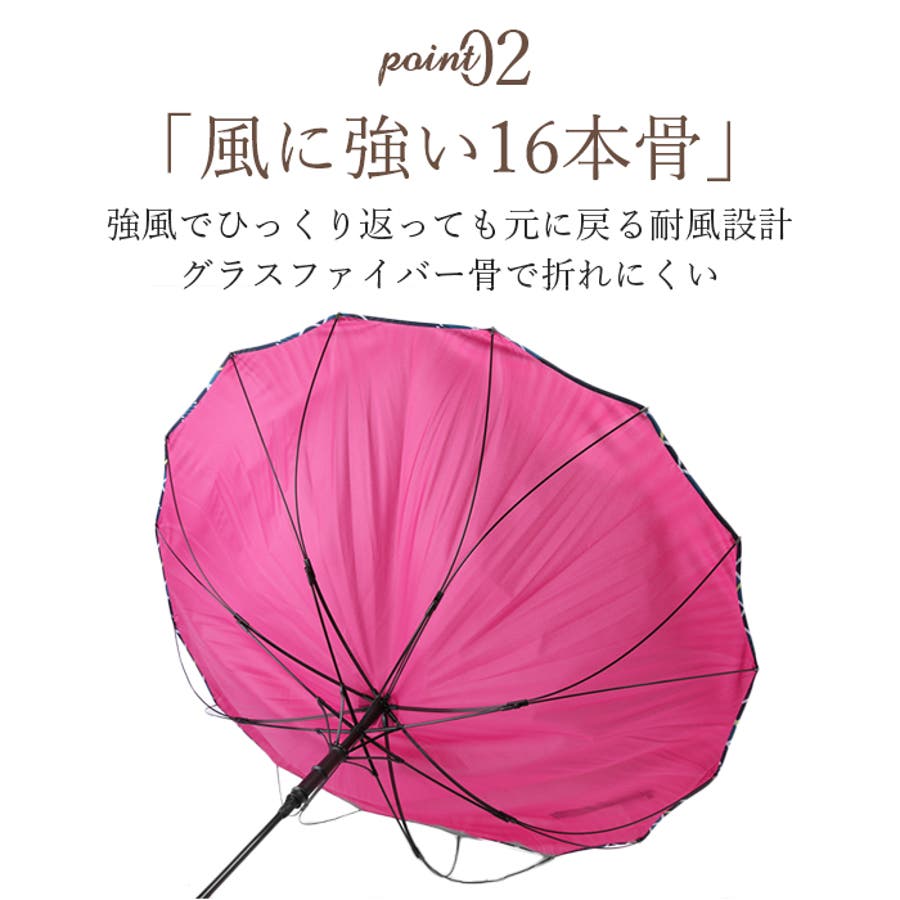 ・風に強い16本骨タイプ!強風で傘生地がひっくり返っても元に戻る耐風設計。また、グラスファイバー骨を使用しているので折れにくいのもポイント!