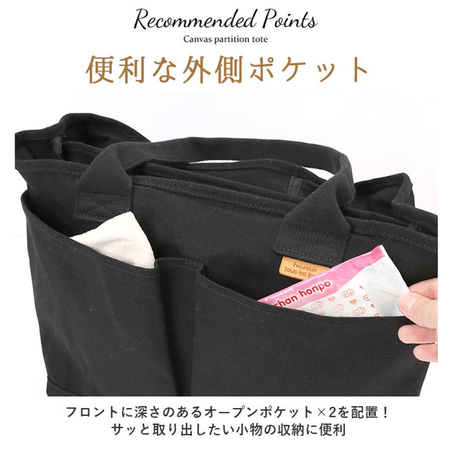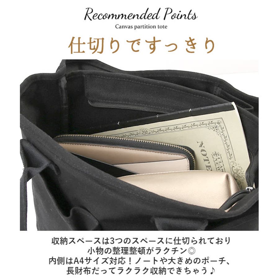 【キーワード】キャンバストート 仕切り 大容量 自立 肩掛け 布 A4 横 ファスナー付き 天ファスナー 通学 通勤 マザーズバッグ ママバッグ 仕分け 整理 おしゃれ シンプル 大人 かわいい キャンバス仕切りトート Lサイズ SFK21-0809 レディースバッグ